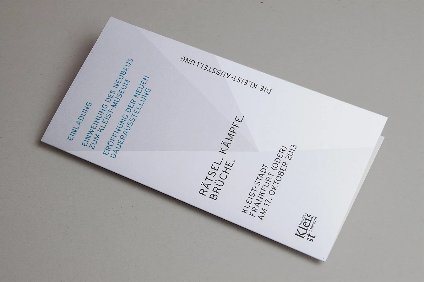 Rätsel. Kämpfe. Brüche. Die Kleist-Ausstellung. Gestaltung von Katalog und Druckmedien zur Dauerausstellung im Kleist-Museum Frankfurt/Oder.